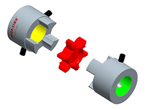 * Coupling assembled by pressing a polyurethane sleeve into hubs on both sides.